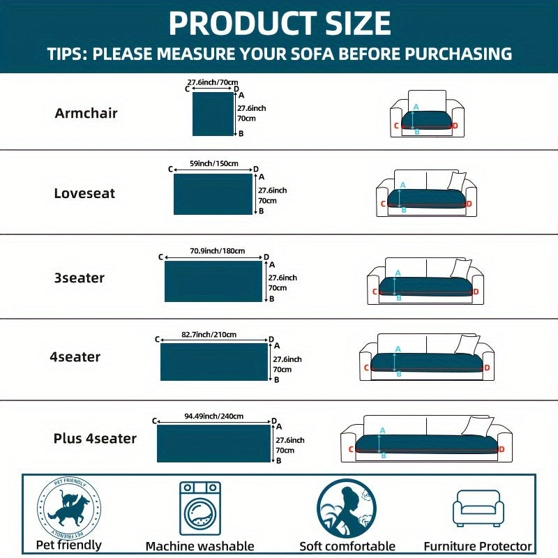 - All‑in‑one quilted protection uses Shu Velveteen (100% polyester) with a jacquard weave to deliver a plush, durable fit across armchairs, loveseats, 3‑ to 4‑seater sofas, and sectional layouts.