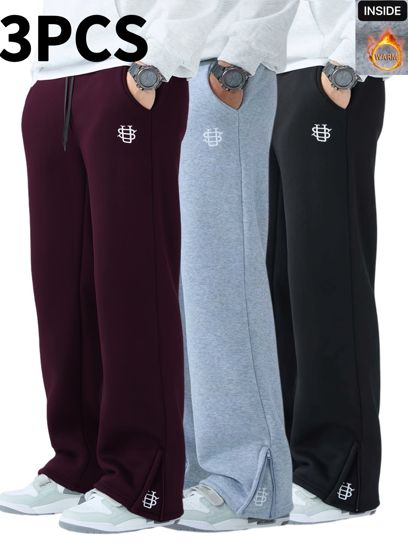 Men's Embroidered Casual Joggers Three Pack Warm Lounge Pants