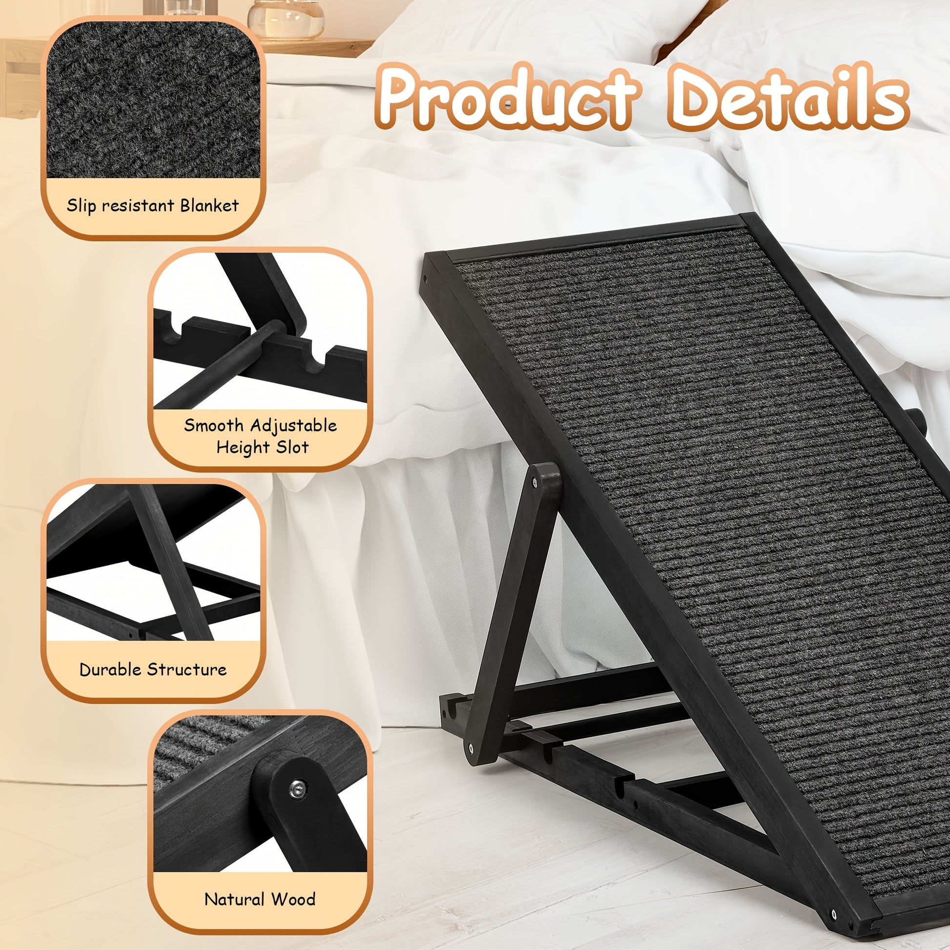 - Adjustable length adapts to beds, couches, and car seats, giving your extra-small to medium dog or cat a steady, comfortable climb with confident steps.