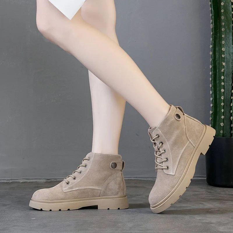 Drkanol Women Genuine Leather Ankle Boots Flat Heel Casual