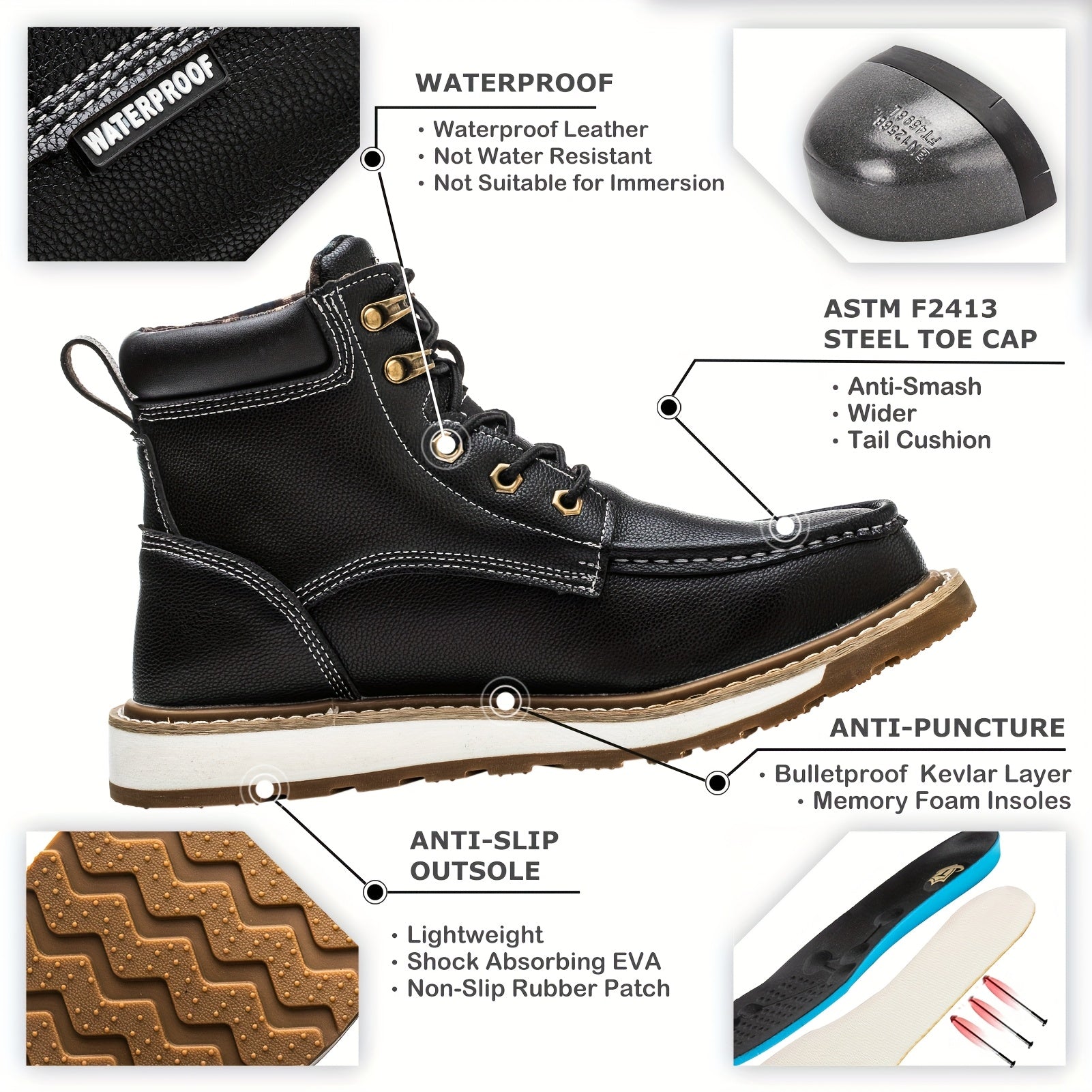 TAERGU HighGradeSteel Toe Boots Men Moc Toe Non Slip Safety