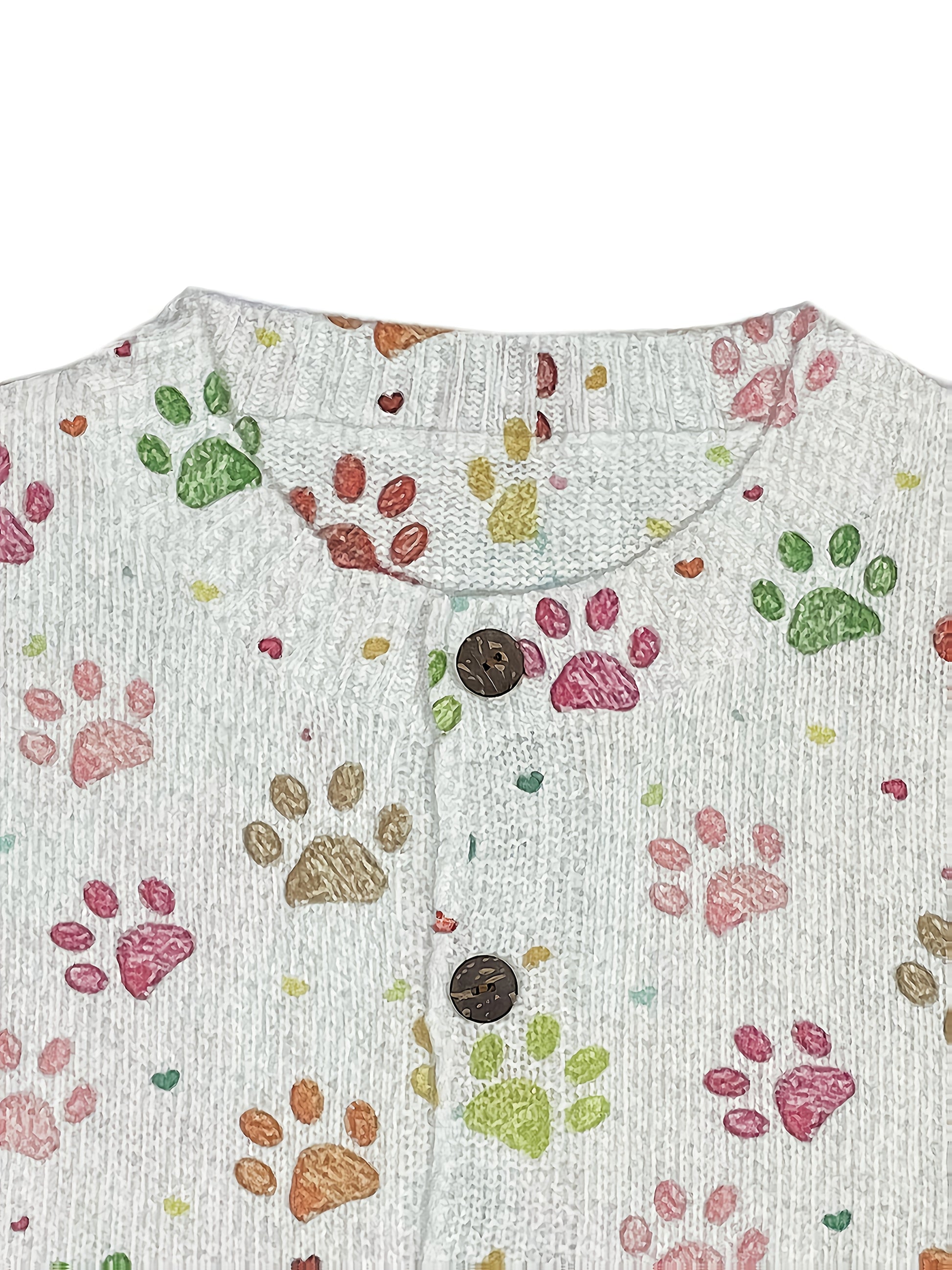 Womens 3D Dog Paw Print Cardigan Button Front Sweater