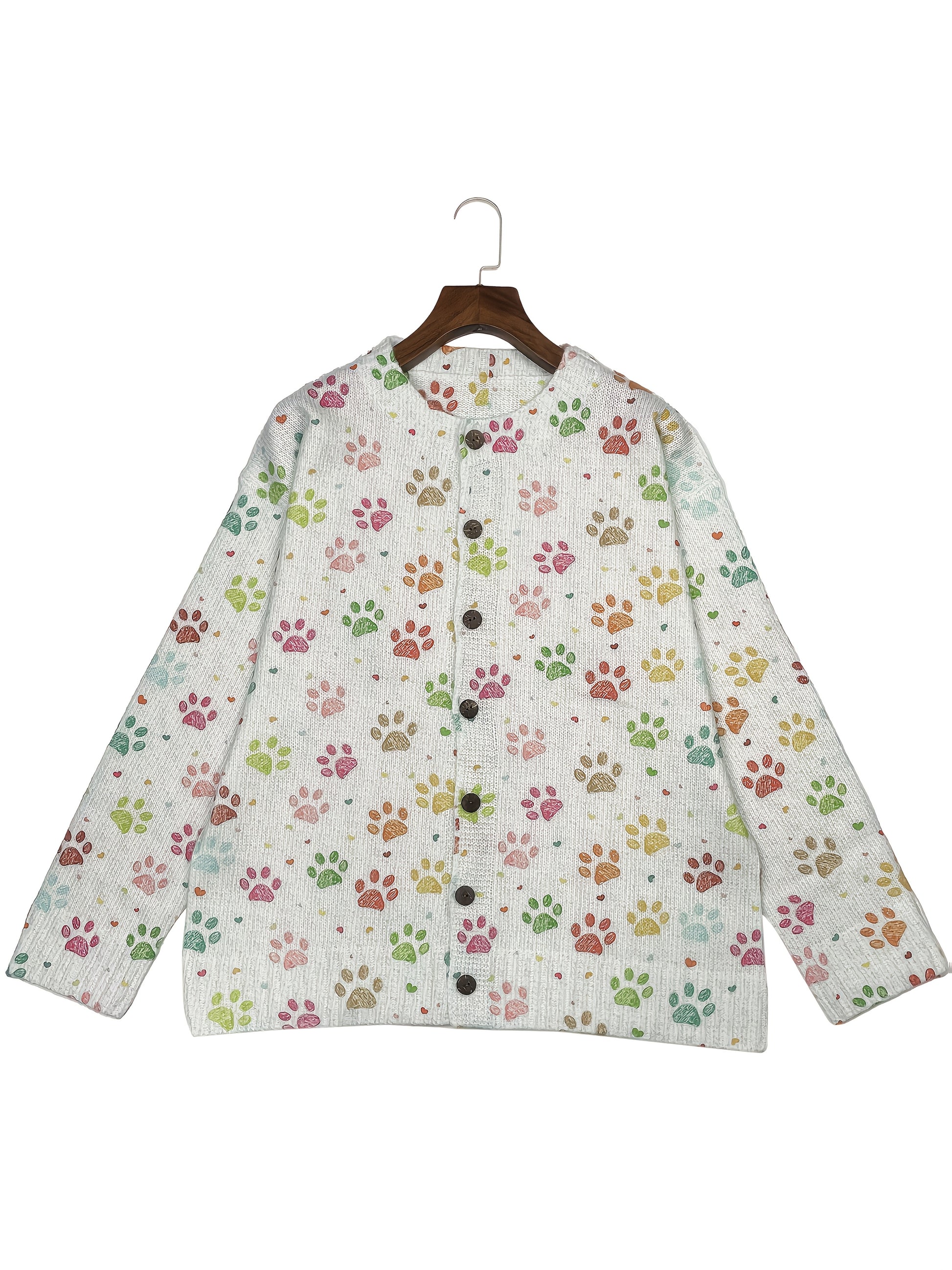 Turn heads and stay cozy this season with a playful 3D dog paw print cardigan that looks as good as it feels.